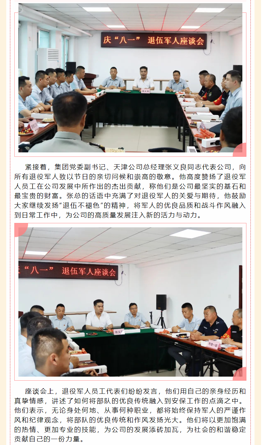 【共忆军旅荣光,携手并进新征程】华信3044永利集团天津保安公司举办庆“八一”退伍军人座谈会