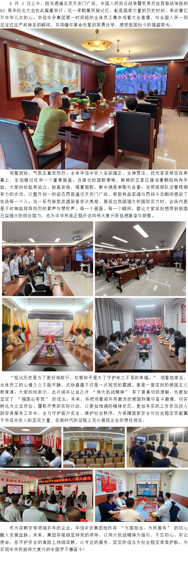 致敬峥嵘岁月!华信3044永利集团组织全体员工集中观看抗战胜利 80 周年纪念大会直播