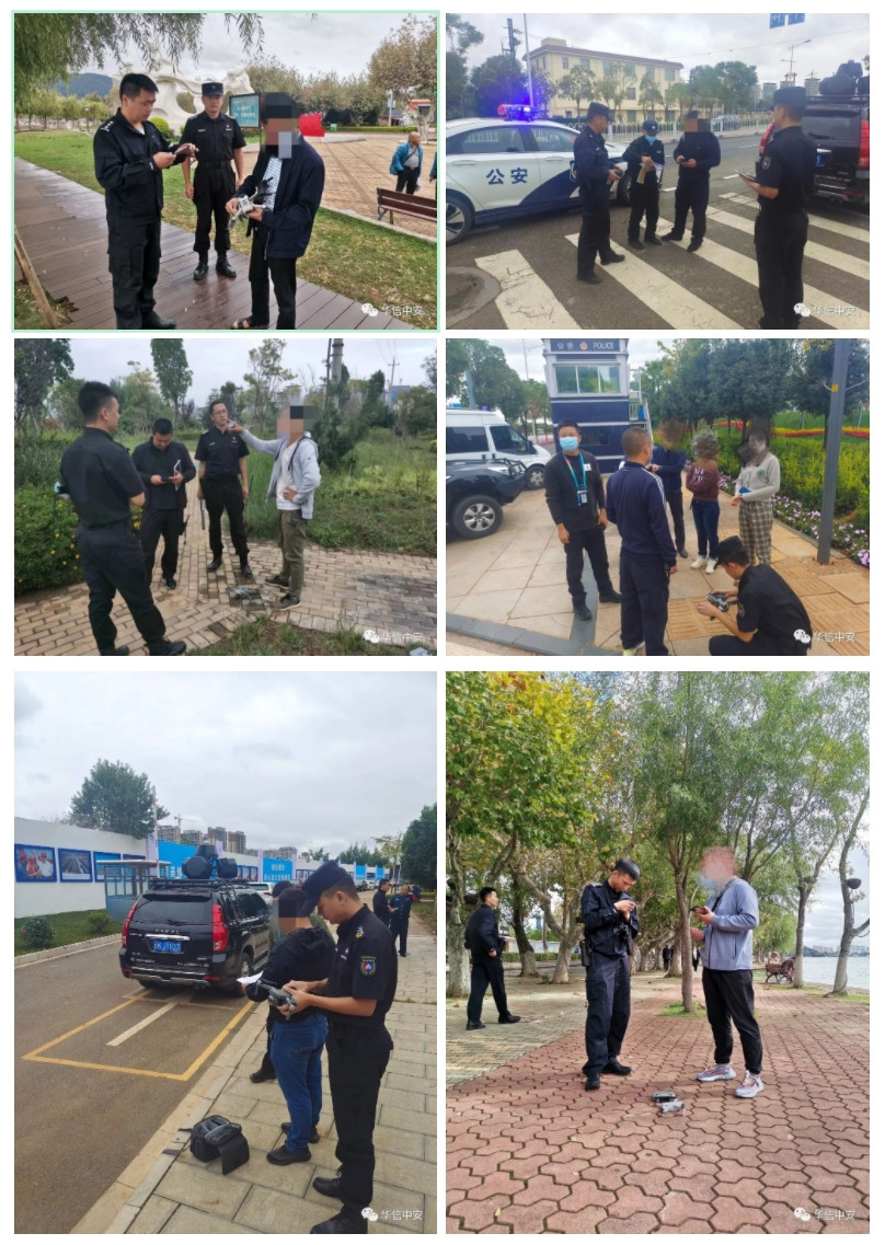 图为:云南昆明COP15会议(10月11-15日)低空安全防控执法.制止违规飞行现场