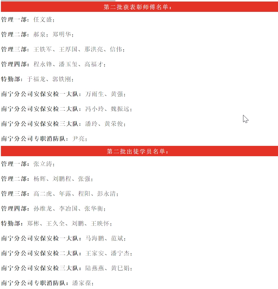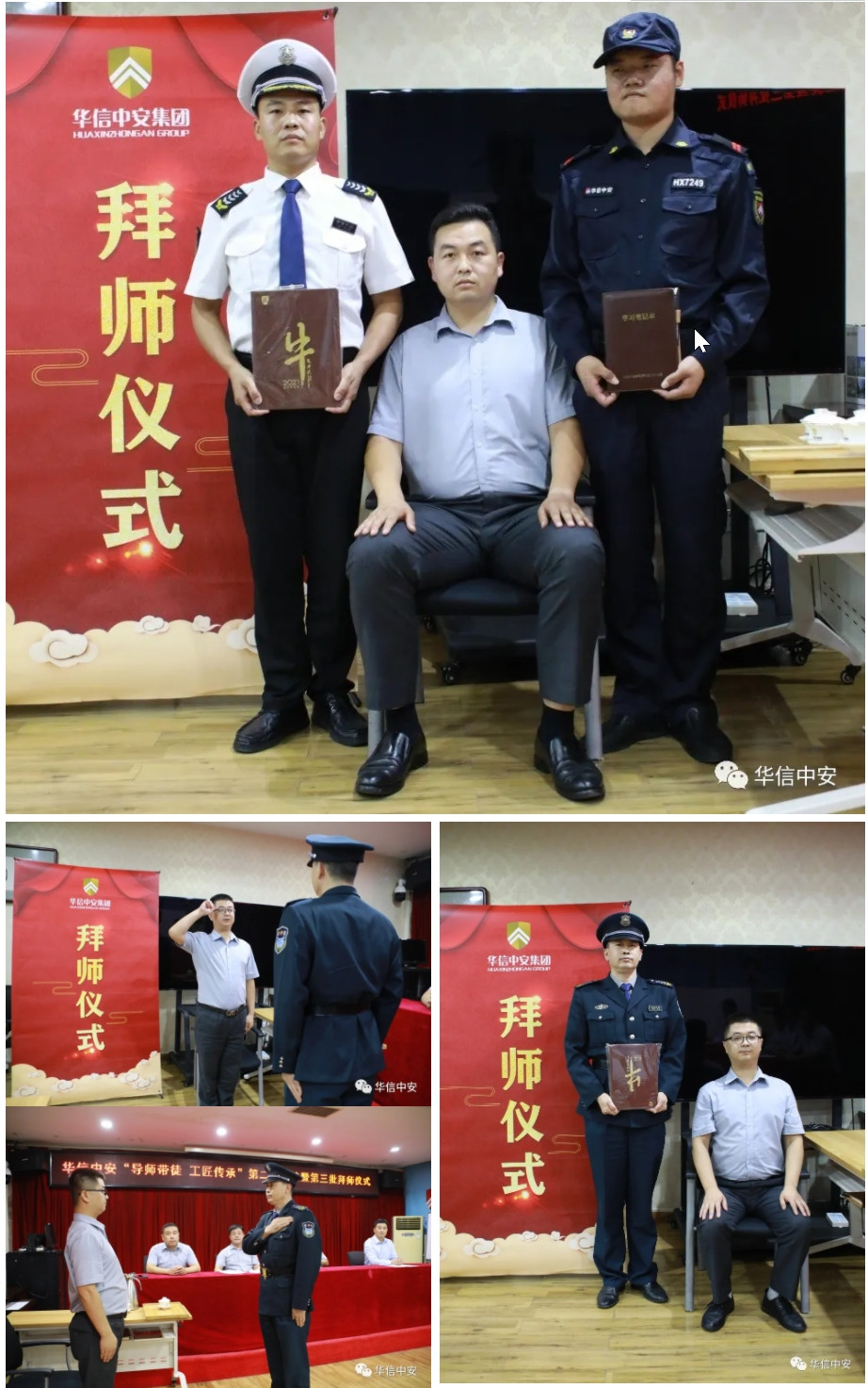 根据"导师带徒、工匠传承"师徒管理实施方案,2021年5月初,集团举办了第二批"导师带徒、工匠传承"拜师仪式。经过3个月师徒共同学习、共同进步、共同发展,师傅、徒弟在平时的工作中认真负责、积极进取、表现突出。为了表彰先进,激发广大保安员的工作积极性,经各部门考核,集团研究决定,对各位师傅的倾囊相授、敬业精神给予通报表彰和奖励,对通过3个月的努力学习、经过全面考核合格的徒弟批准出师。