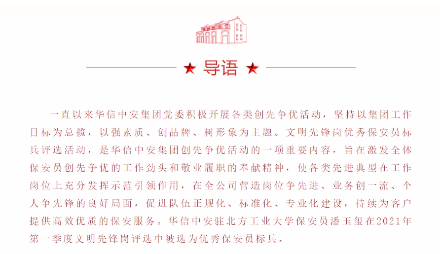 优秀保安员标兵:华信3044永利集团驻北方工业大学潘玉玺