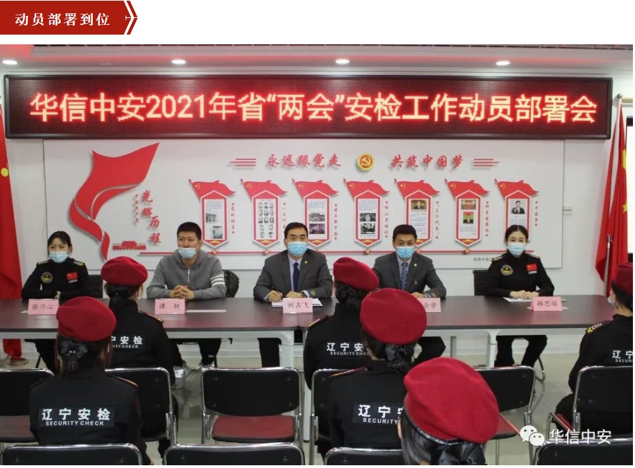 公司各级领导高度重视此次安检任务,坚持高起点谋划、高姿态担当、高质效落实,在保安管理总队动员部署基础上,组织开展再动员、再部署,刘占飞董事长从提高政治站位、加强纪律观念、树立良好形象、明确责任意识、确保完成任务等五个方面,对全体参勤人员进行了动员教育;李云学总经理宣读了《两会安检工作实施方案》,进一步明确了工作内容、标准和要求。相关业务部门研究细化任务,责任明确到人、层层分兵把守,形成上下闭合回路。