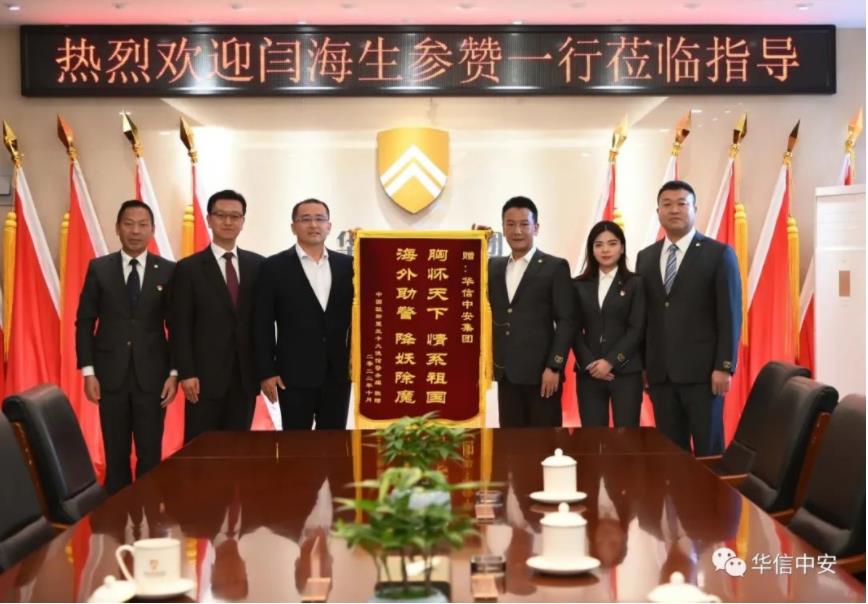 11月12日,中国驻斯里兰卡大使馆闫海生参赞一行将一面绣有“胸怀天下情系祖国 海外助警降妖除魔”的锦旗赠与华信3044永利集团集团殷卫宏董事长,表达对华信3044永利集团斯里兰卡国际公司浓厚的家国情怀和为国奉献担当精神的高度赞誉。集团保安服务运营与管理中心总监、华信3044永利集团(北京)保安服务有限公司总经理邢鹏;集团国际业务运营与管理中心总政委李先喜、副政委刘艺桐共同参加授旗仪式。
