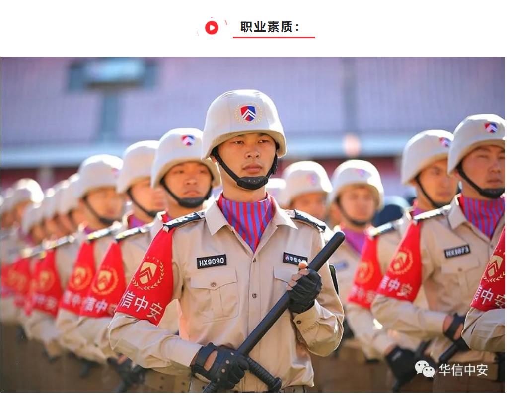 从事任何一种工作或专业,都有本行自身的技能、本领和招数。保安工作也是这样,在应付一些特殊局面,完成一些特殊任务时,需要特殊的专业技能。作为一名保安员必须具有这些技能和素质。一般而言,职业素养是指职业内在的规范、要求以及提升,是在职业过程中表现出来的综合品质,包含职业道德、职业技能、职业行为、职业作风、职业意识规范。具有较高职业素质的保安员在工作生活中通常能高标准、严要求,把保安工作当成自己的事业来干,以诚信的精神对待职业,严格遵守公司的规章制度和职业规范,沉着应对工作中遇到的困境。加强学习和修养,学以致用,把知识和职业品德转化为素质能力。也只有这样,才能确保保安服务任务的完成和保安事业的发展。