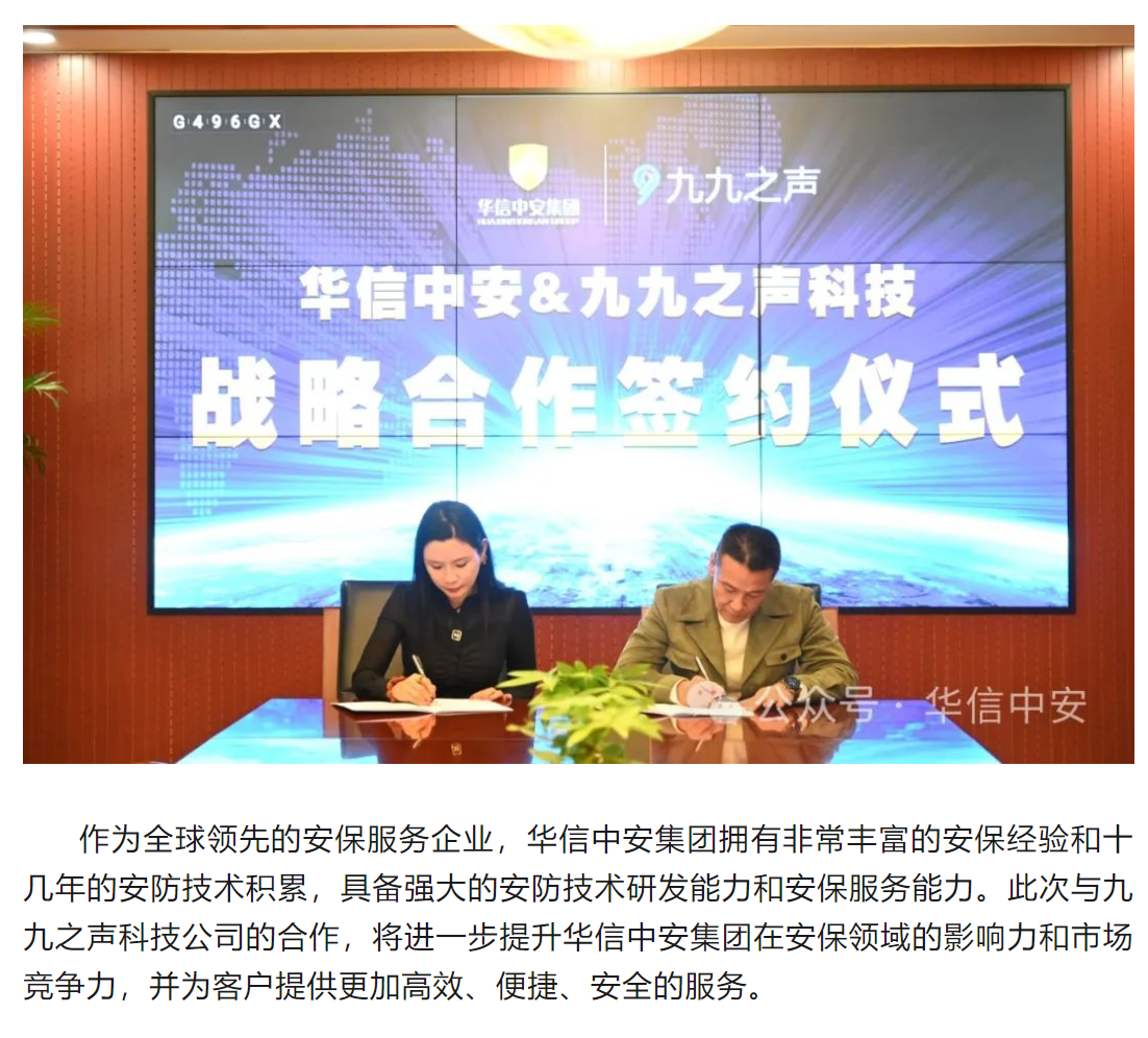 华信3044永利集团集团与九九之声科技举行战略合作签约仪式 打造全球安保行业智能化新标杆