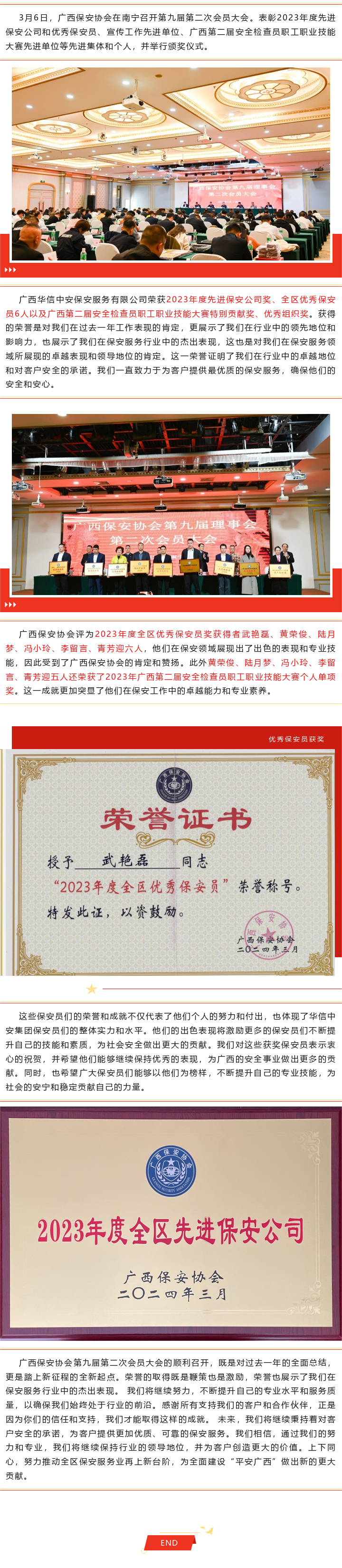 【喜报】广西华信3044永利集团保安服务有限公司获广西保安协会授予多项荣誉
